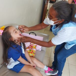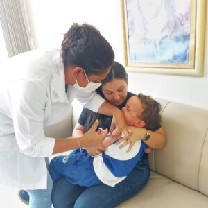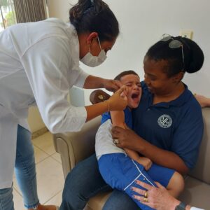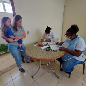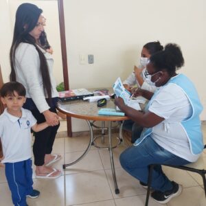 Regina Reis, chefe do departamento de epidemias, Joelma Nascimento e Maria Ilma da Silva, técnicas de enfermagem do setor de vigilância epidemiológica, atenderam as famílias e as crianças com muito carinho e se disponibilizaram a esclarecer todas as dúvidas. Foram ofertadas também, as vacinas do Calendário Nacional de Vacinação e os pais receberam um cartão, sendo encaminhados para a Unidade de Saúde, para a vacinação contra a COVID-19.