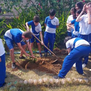 Dia especial no início da primavera, estação das flores coloridas e das folhagens verdes que falam de alegria e esperança. Alegria e esperança foram expressas pelas crianças e jovens do Colégio Imaculada Conceição, Rede Filhas de Jesus, ao plantar árvores no nosso jardim.
