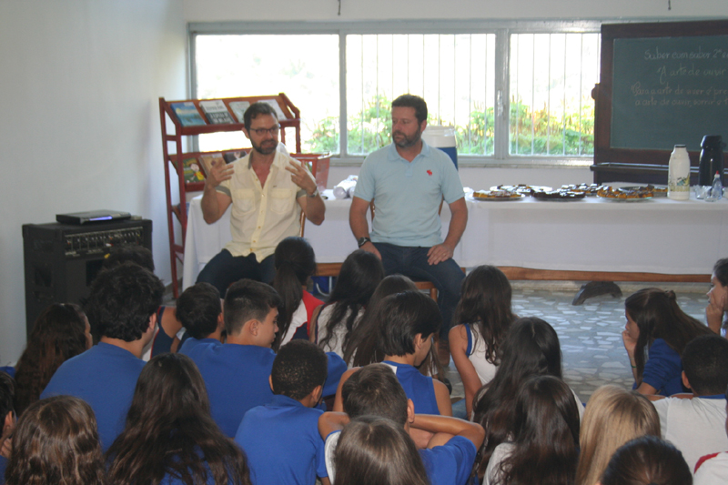 Realizamos, no dia 03 de setembro, a 2ª edição especial do Saber com Sabor. Nessa edição contamos com a participação dos alunos do 6º ano, do Instituto Metodista Arca de Noé, com os alunos do 6º ano da nossa escola, e com o mediador da roda de conversa, José Gabriel. O tema foi A arte de Ouvir. Através do recurso da música clássica, o mediador promoveu a escuta apurada buscando sempre a interpretação de que mais importante que a “oratória, é a escutatória”. Acreditamos que o evento tenha oportunizado a todos o desenvolvimento da percepção auditiva para um melhor relacionamento entre o indivíduo e o meio que o cerca. Após uma deliciosa “aula” sobre a arte de ouvir, finalizamos o momento com o sabor. Um delicioso lanche foi preparado pelo CIC. Todos os presentes saborearam o saber e o sabor!